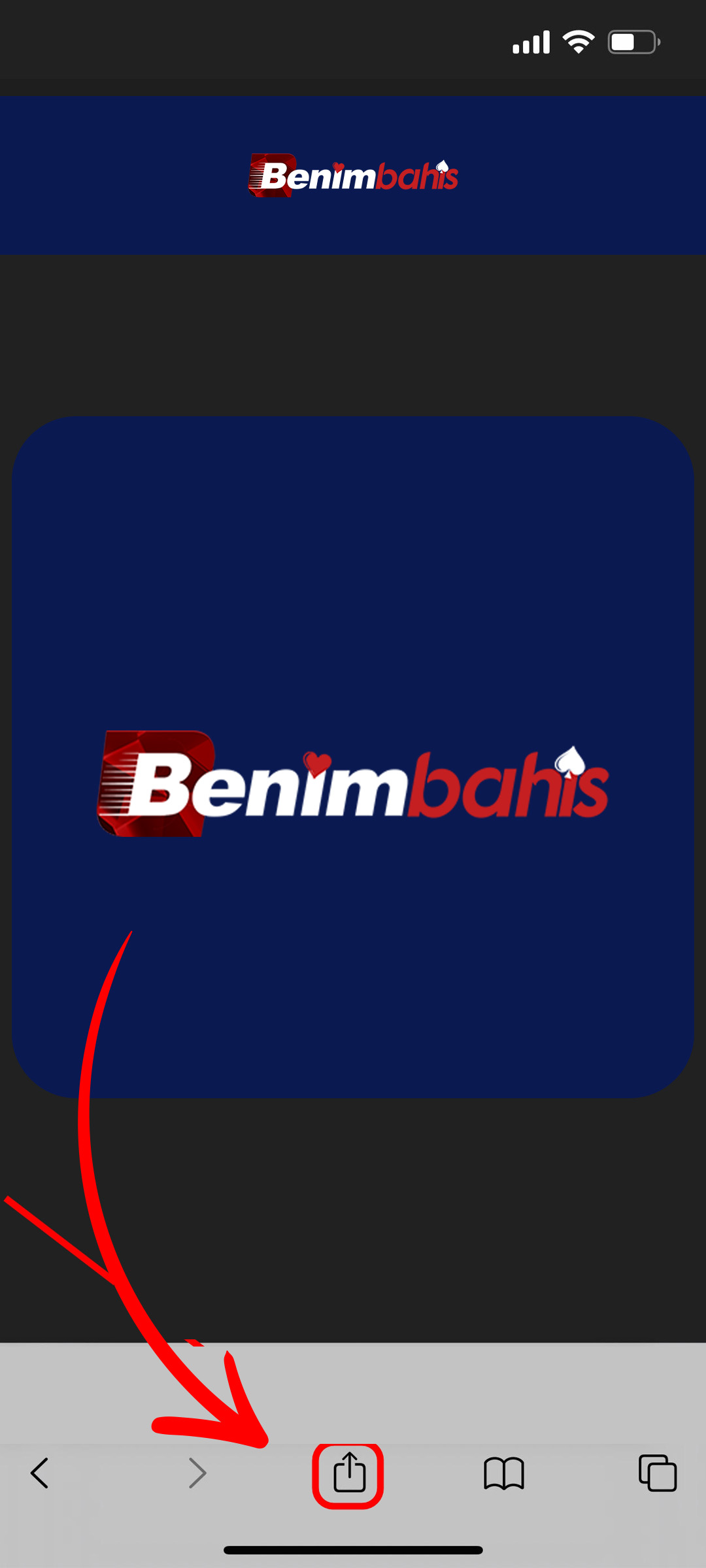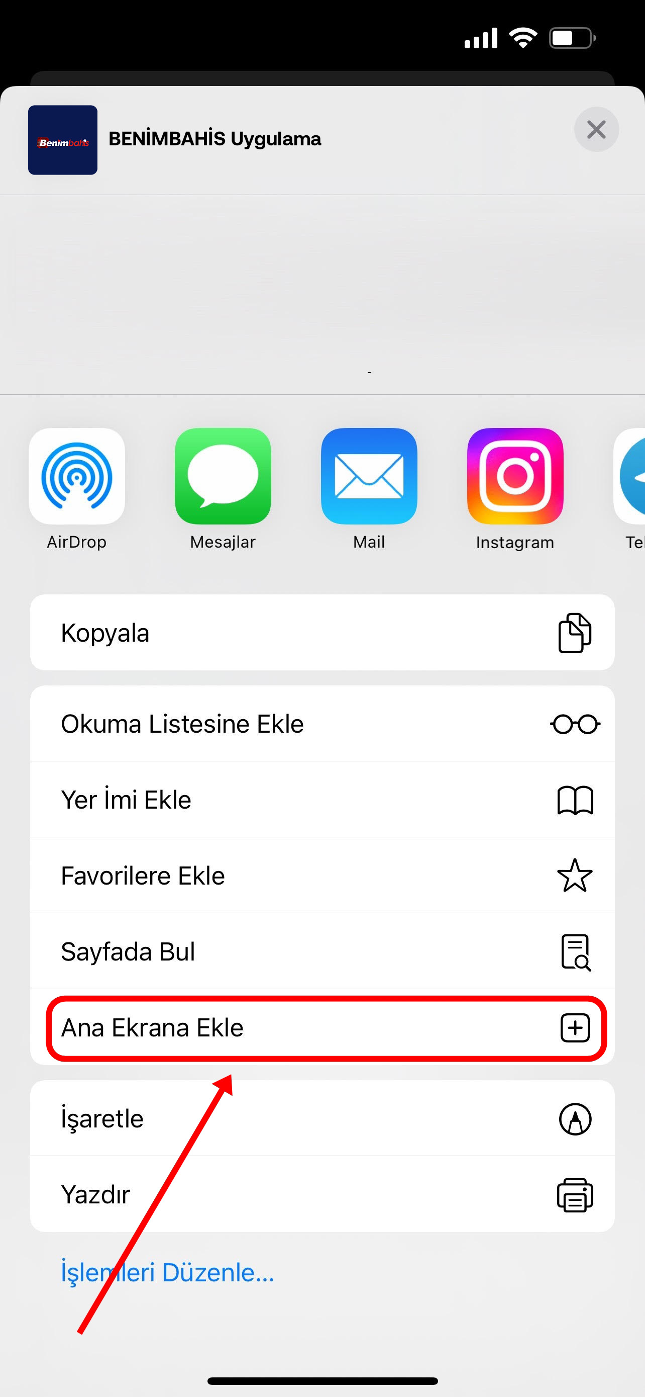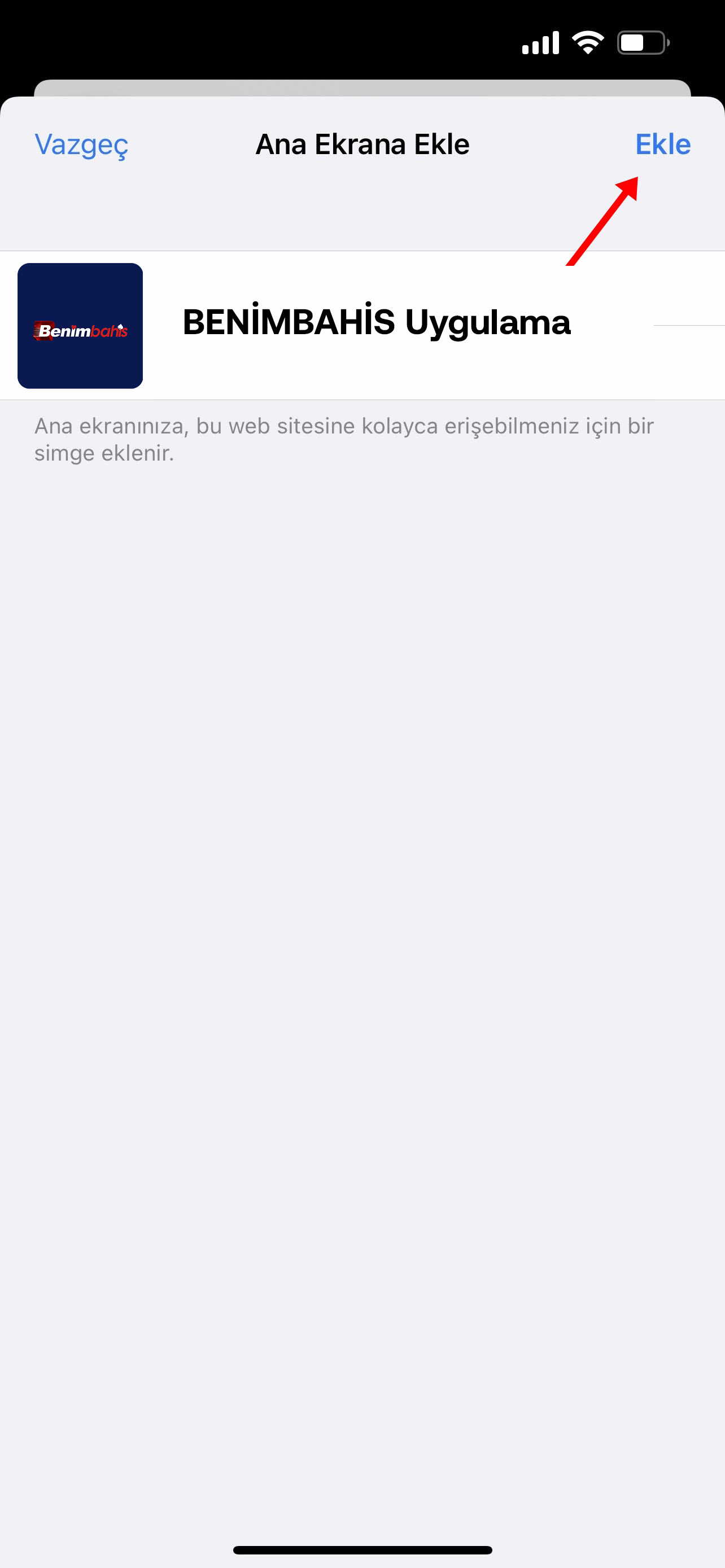 Sağ üstten "Ekle" butonuna tıklıyoruz ve artık siz de BenimBahis mobil